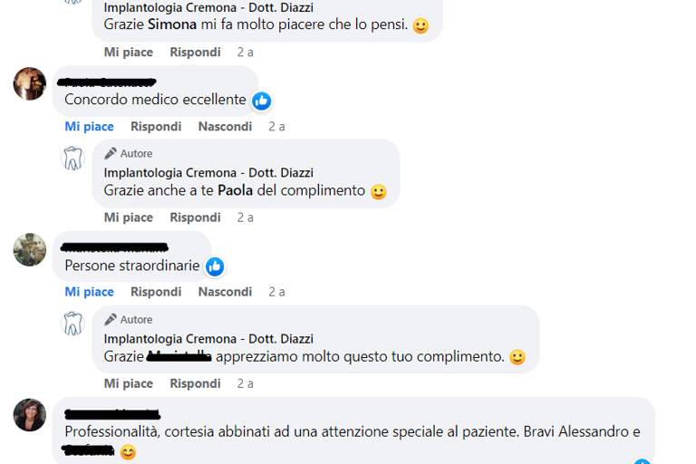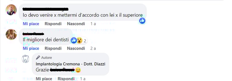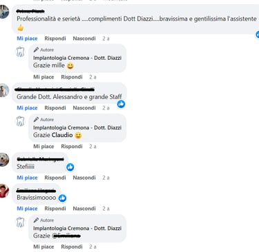 "Un sincero ringraziamento al Dott. Alessandro e al suo grande staff. Ho avuto altre esperienze prima con impianti e protesi e sono rimasto molto insoddisfatto. Il Dott. Diazzi ha saputo riparare danni causati in passato da altri colleghi con competenza."